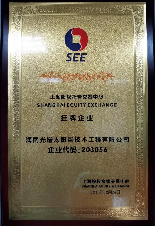 海南光譜節能環??萍加邢薰境闪⒂?001年,注冊資本1018萬元人民幣,是一家專業的太陽能、中央空調工程技術系統集成商。2014年12月24日,我司在上海股權托管交易中心成功掛牌,上股交代碼為:203056。